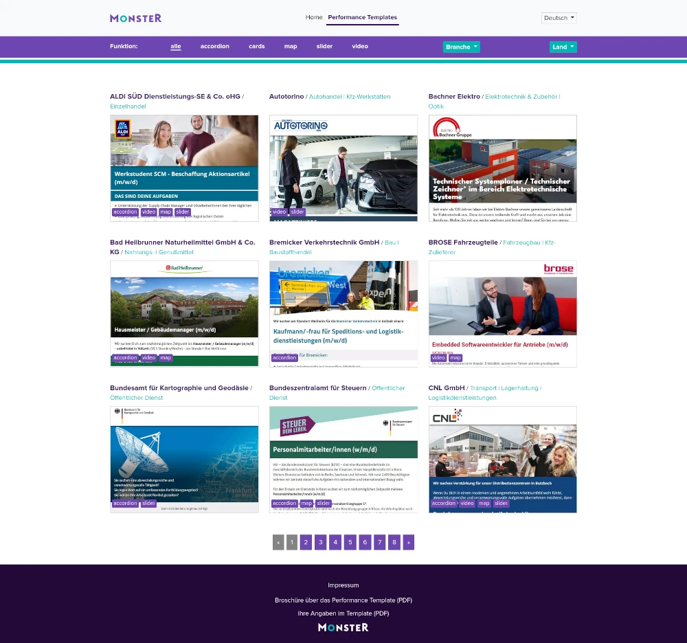 These pages run on Grav, and I tried out advanced features such as pagination (visible in the first photo) and working with taxonomy, where individual templates can be sorted according to the dynamic elements used, such as sliders, maps, YouTube videos, or according to the field of the company for which we created them.