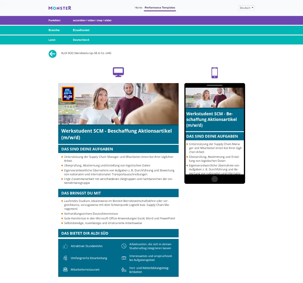 I worked on this project as part of my job. It was a kind of gallery of ad styles that we offered to our clients. When you clicked on an individual ad, it opened in a new window, where you could see how it would be displayed on a computer, and next to it was a preview of the mobile version. All dynamic elements, such as sliders and maps, were functional.