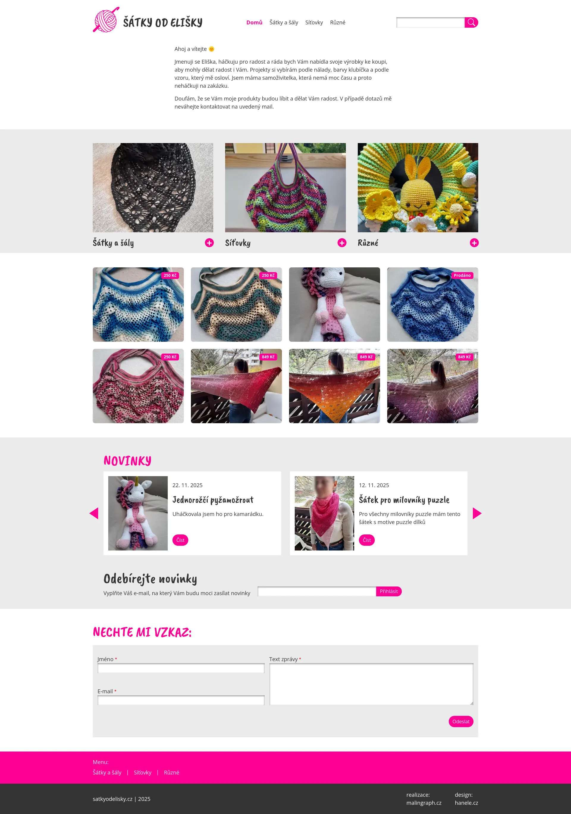 Můj nejnovější projket - jak jinak než pro kamarádku, která miluje háčkování a je v tom skvělá. Jedná se o portfolio jejich výrobků. Design stránek navrhla má kamarádka a bývalá kolegyně z Monsteru, Hana Žižková - https://www.hanele.cz/. Stránky běží na Drupalu 11. Jako CSS framework je opět použit Bootstrap 5.